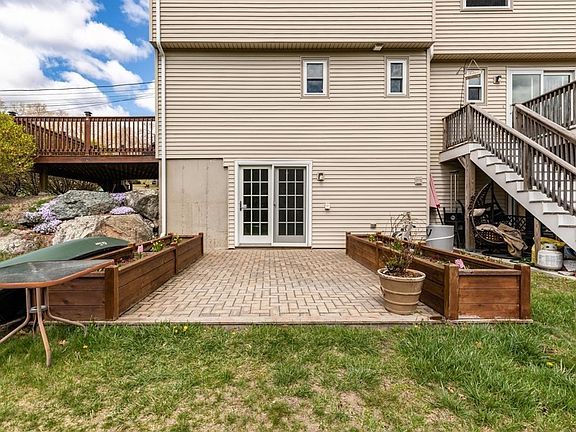 This well-maintained end unit boasts a 14 x 13 deck, large side yard, shed, flower boxes, paver patio and firepit for your outdoor fun. As you enter through the front door you are welcomed to a tiled entry way & lovely wide staircase to the second floor. The first floor has gleaming hardwood floors,large living room & kitchen. The kitchen has an eat in dining area, a peninsula island with cabinets on both sides.The kitchen has lovely granite, stainless steel appliances, recessed lights and slider to the deck. A half bath with granite is also on this level. Upstairs is a large main bath with double granite vanity, and large linen closet. The main bedroom has a WOW factor for sure. It brings in beautiful light and has vaulted beamed ceiling and a large custom closet. The second bedroom is also a nice size with lots of light and large closet. The basement includes Laundry area with sink, utility room and fabulous home office/den. Office has a walk out though french foors to patio.