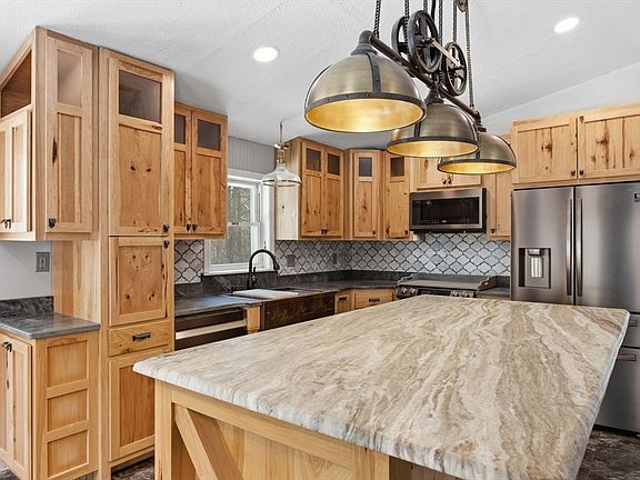 Welcome to this beautiful home set on 1.8+ private acres, offering the perfect blend of comfort, flexibility, and space. The main level features two well-appointed bedrooms and two full bathrooms, including a spacious primary and on-suite. An open and bright living area flows into the kitchen and dining space, creating an inviting layout ideal for everyday living or entertaining. The lower level adds exceptional potential with an additional room that can serve as a bedroom, home office, gym, or flex space—tailor it to your needs. Lower level is complete with a hot tub for enjoyment and walkout to the newly installed patio. With a metal roof and siding, seller OWNED solar panels and newer systems, nothing left to do but embrace the tranquility. This expansive lot is ideal for gardening, recreation, or simply soaking in the scenic surroundings. A rare opportunity to own a move-in-ready home with ample land and adaptable living space.