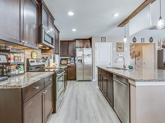 This large 5 bedroom 3 full bath home that is perfect for a multigenerational home with BEDROOM AND FULL BATH DOWNSTAIRS. You will love the open floor plan with rustic accents that invites you into the comfortable great room. A large primary suite is upstairs with 3 other large bedrooms & a loft completes the 5 bedroom home. The back yard has fantastic evening views and is fenced with a side door & double gate. If you like to cook with gas, there is already a gas option run behind the stove/oven. The tankless water heater and heat are already natural gas. Kitchen sink has garbage disposal and refrigerator/freezer with ice & water. THE HVAC is updated with UV Light for great air quaility, 3 zones, 3 thermostats wtih mobile apps. Community POOL! HOA$65mos!Plus a club house, excercise area, trails, and park. Close to Volvo and Summverville and Lake Moultie E Jarvis Boat Ramp and Lions Beach Lake Recreational area in Moncks Corner. The home is insured as a single home (not a town home) as it has a 15 hour-firewall for separation between its neighbor which also provides a quiet environment with 2 car garage! The 3D tour is up with floor plan on the "Z" site or come and see it!