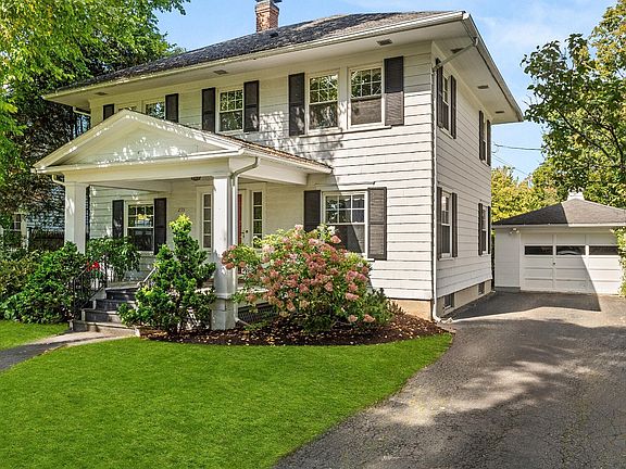 Enjoy a welcoming mudroom and a finished lower level with laundry for added living space. Outside, a charming courtyard-style backyard with a brick patio is surrounded by mature landscaping and specimen trees and is ideal for relaxing or entertaining. The one-car detached garage includes an automatic opener. With its inviting front porch, replacement windows, efficient gas heat and hot water, and evident pride of ownership throughout, this classic Colonial is truly a gem in a prime Pittsfield parkway location!