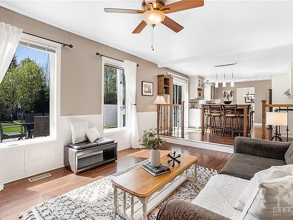 This family-friendly home offers 2000+ sq ft of living space and is nestled among beautiful mature trees in a quiet neighbourhood of Russell. Country living in the village! The foyer welcomes you to a front lr with a ton of natural light. The dr is equipped with elegant wainscotting detailing. The updated kitchen has it all; an eat-in breakfast bar, ceramic backsplash, cabinets to the ceiling, complete w/ SS appliances. The sunken lr features a cozy gas fireplace and stunning views of your backyard. A half bath & laundry completes the well-laid-out floorplan. The 2nd lvl features 4 generous-sized bdrms, two full baths including the lrg primary rm w/ ensuite! The open rec room & an oversized bonus room perfect for a 5th bedroom, office or playroom completes the lower lvl. Close to WE Burton Conservation area, Castor River, playgrounds, schools, bike trails, sports dome & more. Offers presented Tues. May 17th, 2PM Seller reserves the right to review & accept pre-emptive offers