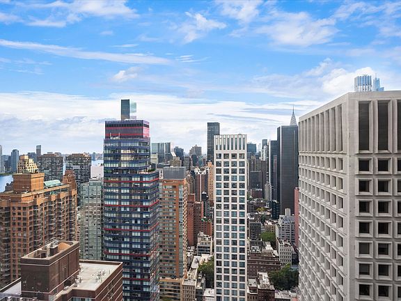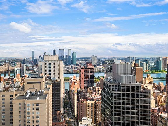 Flooded with sunlight from walls of floor-to-ceiling glass, the apartment captures panoramic vistas stretching east, south, and west over the Manhattan and Queensboro Bridges, the Chrysler and Empire State Buildings, and the dazzling new architectural landmarks defining Midtown's skyline.