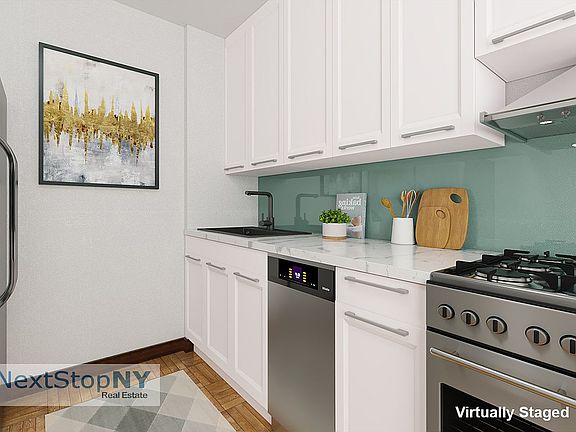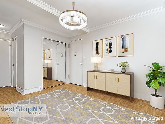 This spacious, sun-drenched home features a gracious entry foyer that opens into an expansive living room, perfect for both entertaining and relaxing. With south-facing city views, the home is bathed in natural light throughout the day. Your large furniture and layout needs are all welcome here with ample space for living, dining and even home office areas, this living space will not disappoint! Wall-to-wall custom radiator covers with built-in storage add both function and design.