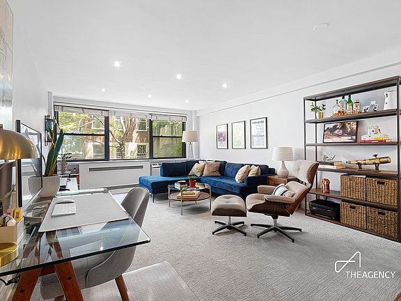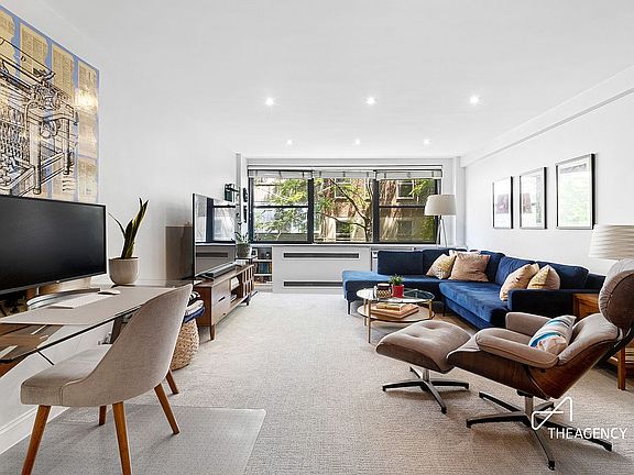3B is a beautifully renovated, large 1-bedroom apartment that combines modern style with comfort. This stunning home features an open floor plan, creating a seamless flow between the living, dining, and kitchen areas, perfect for entertaining or relaxing. To your right is the recently renovated and expanded, open kitchen with stainless steel appliances, marble backsplash, quartzite counters, and a peninsula. From there, you can relax or entertain in the adjacent spacious living room with wall of windows and views overlooking the neighboring townhouses, trees, and garden. The large bedroom is positioned away from the living room for privacy with a generous closet and wall of windows offering a quiet retreat.. Additional closets in the hallway. The bathroom has been renovated to include a Toto toilet, Porcelanosa modern vanity, and tile, along with a new tub/shower with glass doors.. In addition, the entire home has been upgraded with 5" white oak floors and two brand-new through-wall Freidrich AC units. 235 East 57th Street is a full-service coop offering 24-hour doorman, full-time super, landscaped courtyard, roof deck and newly renovated lobby and hallways. The property is also conveniently located across the street from Whole Foods and near the N, R, W, Q, E. M, F, 4, 5 and 6 trains as well as the uptown/downtown and crosstown buses. Pied e terres allowed.
