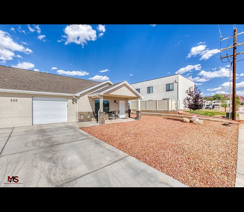 Single level home built in 2019. Has great views and is within walking distance to downtown restaurants, grocery, and entertainment. Recently added large grass area in backyard. With ample room for play and entertainment. Completely fenced. All stainless steel appliances included except washer and dryer. Single car garage assessable. Perfect size for single, couple, or new family. Nearby landlord for any issues and peace of mind.