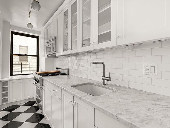 A pristine and quiet one bedroom is now available for purchase in this immaculate Bing & Bing building on tree lined 73rd. street. Enter into a large foyer with a coat closet to your right. The foyer is large enough for a dining table and provides a nice separation from the oversized sunken living room. The apartment was completely renovated with a thoughtful aesthetic in keeping with the quality of the building. The windowed kitchen has marble counter tops, a Viking range, Liebherr fridge, and Miele dishwasher. There is plenty of storage space as well. The apartment is in a corner of the building facing north and west and gets great light. The living room faces north overlooking townhouse gardens and the Master suite has double exposures, plus his and hers closets. Off the renovated bath which is windowed and features a rain shower head, is a dressing area that can also be used as an additional walk-in closet.