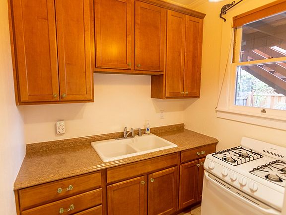First floor, ~400 sq ft studio apartment in historic building with close proximity to Stanford and downtown Palo Alto, available August 1st. Includes a large living/bedroom with large closet and overhead storage space, a small and fully-appointed separate kitchen, and a bathroom, complete with art nouveau tile-work. Apartment faces the side and back of the building on the first floor to the left of the entrance. One-year lease offered. Amenities include gas stove, microwave, and garbage disposal, off-street parking, washer/dryer on site, and backyard patio available to tenants and guests for their use. Superbly convenient and highly desirable quiet downtown Palo Alto North location; super friendly building; short distance from the Cal-train. Charming and full of light, apartment is fully equipped with blackout/light-filtering top-down bottom-up shades for insulation and total privacy control. Off-street parking, updated electrical for the unit and brand new refrigerator (changed since the pictures were taken), hardwood floors, tons of natural light, bike parking, back patio access, private entrance. An in-person tour can be scheduled on request. Owner pays for water, garbage, and gardening. Renter pays for combined gas, electric, and unit sewer bill. Off-street parking for one car (and/or can buy a permit from city for street parking). No smoking. Building with six other tenants has multiple outdoor entrances (this unit has its own private entrance) and separate outdoor spaces. Tenants have agreed to follow Coronavirus guidelines for the safety of all tenants.