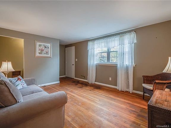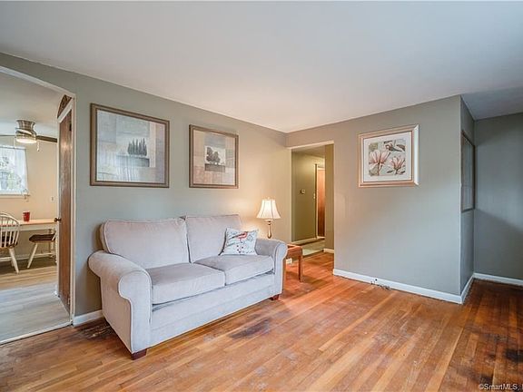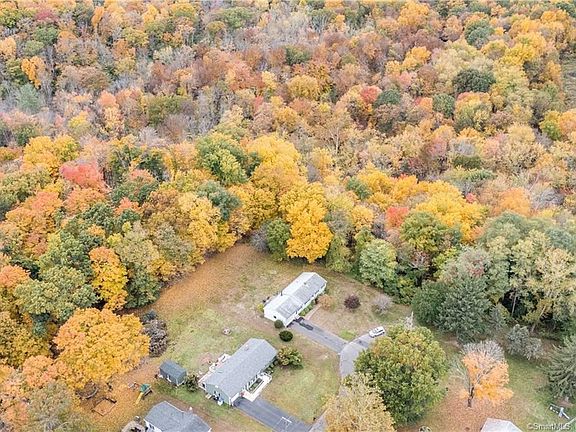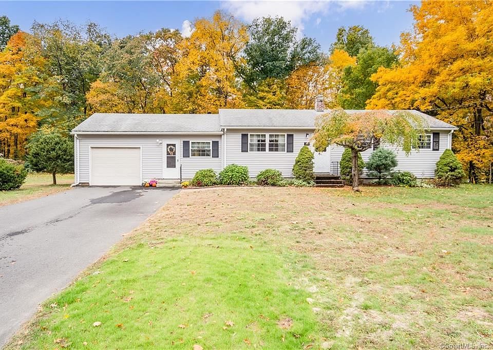 Location, Location, location! It can't be said enough and you won't be disappointed in this best location on the cul-de-sac! This ranch style home on almost 3 acres awaits the next homeowner. This owner has enjoyed for 62 years, the one floor living, the privacy with great hunting/fishing on their own property which backs up to the Scantic River. While some of the property is treed, there is a good sized level yard, an oversized one car attached garage, and great curb appeal with newer windows all adding to the charm of this home. The eat in kitchen boasts luxury vinyl planking flooring and the cook's preference of gas cooking! Hardwood floors can be found throughout the living room and the three bedrooms. Enjoy some cozy nights in the wall to wall carpeted den with a corner gas stove or exit through the sliders to a concrete patio to enjoy easy access to your yard. New hot water heater, new 100 amp service, new corian bath vanity are just some of the updates. While there is only one bath currently, there seems to be so much room to easily expand. Come view for yourself and see the perfect home for starting out or downsizing or perhaps future expansion. Few homes sit on a cul-de-sac and have 2.8 acres at this great price point. This is truly a great opportunity for one floor living and great privacy.