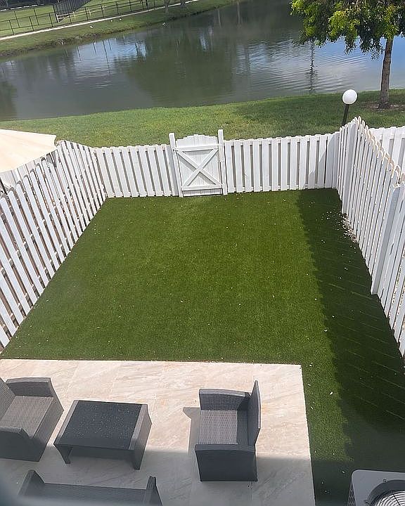 The renovated kitchen boasts granite countertops and modern stainless steel Whirlpool appliances, while both bathrooms have been updated with granite surfaces and stylish frameless glass doors (2024). Ample closet space enhances functionality. Enjoy outdoor living in the fenced backyard, complete with artificial turf and stunning 24x24 porcelain pavers (2024), ideal for relaxing or entertaining.
