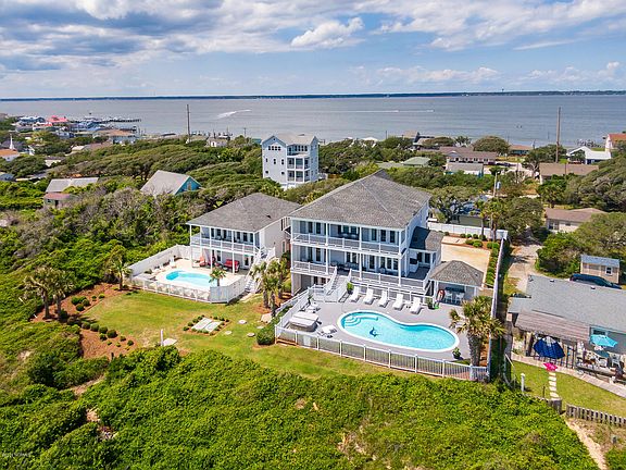 TWO fully furnished homes offering incredible waterviews and rental income (combined $323,000 +/- for 2022 anticipated) from this gorgeous house with a guest house, both overlooking the ocean and both with their own pool. NO CITY TAXES or beach renewal taxes! Beautiful property that sits atop a natural dune, these homes provide luxury, comfort and wonderful spaces to gather with family and friends -- it is no wonder that they are called the Dream Maker (main house) and Memory Maker (guest house). HUGE opportunity - your family can enjoy both homes, use one and rent one, or use both as income-producing investments. The homes are currently on the rental market and rent separately, creating two streams of income. The main house is 3 stories with an elevator featuring 7 bedrooms, 7.5 baths, spacious living areas, home theater, game room with kitchenette on the first floor and ample decking. The guest house offers 3 bedrooms, 3 full baths, spacious living areas, family room, patio and deck to extend the living space. This property is adjacent to the former Roosevelt Heirs land that was gifted to the State of North Carolina which is a part of the Salter Path history (see documents). Great rental history and potential, please see documents for rental history and the vacation rental addendum. Special note: exterior is IFC - insulated concrete forms that have 200+ mph wind load, impact windows and R-50 insulation factor in the walls for safety, security and energy efficiency. Begin your island adventure today at 235 Frost Lane in Salter Path!