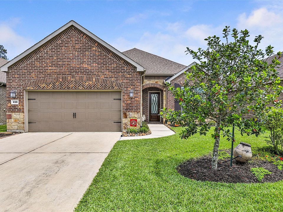 Immaculate rare find Martin Ray with Sunroom in highly sought after Del Webb The Woodlands Community. The floor plan is very open and plenty of space for entertaining. Lots of upgrades just to mention a few include stone on the front, garage extension of 4', sunroom, tray ceilings in primary bedroom and den, gutters, chefs kitchen with pull-out spice rack, pot and pan drawers, kitchen cabinets, soft close drawers, butler pantry, framed mirrors, cabinets in laundry room and master bath, brushed nickel plumbing fixtures, crown molding, pendant lights over island. The kitchen has a huge island. This home is located on a lot with no back yard neighbors! Del Webb community has a lodge, 2 pools, tennis, pickle ball, walking trails, Lilly pond, beautiful community. Close to shopping, grocery, restaurants, hospitals and more.