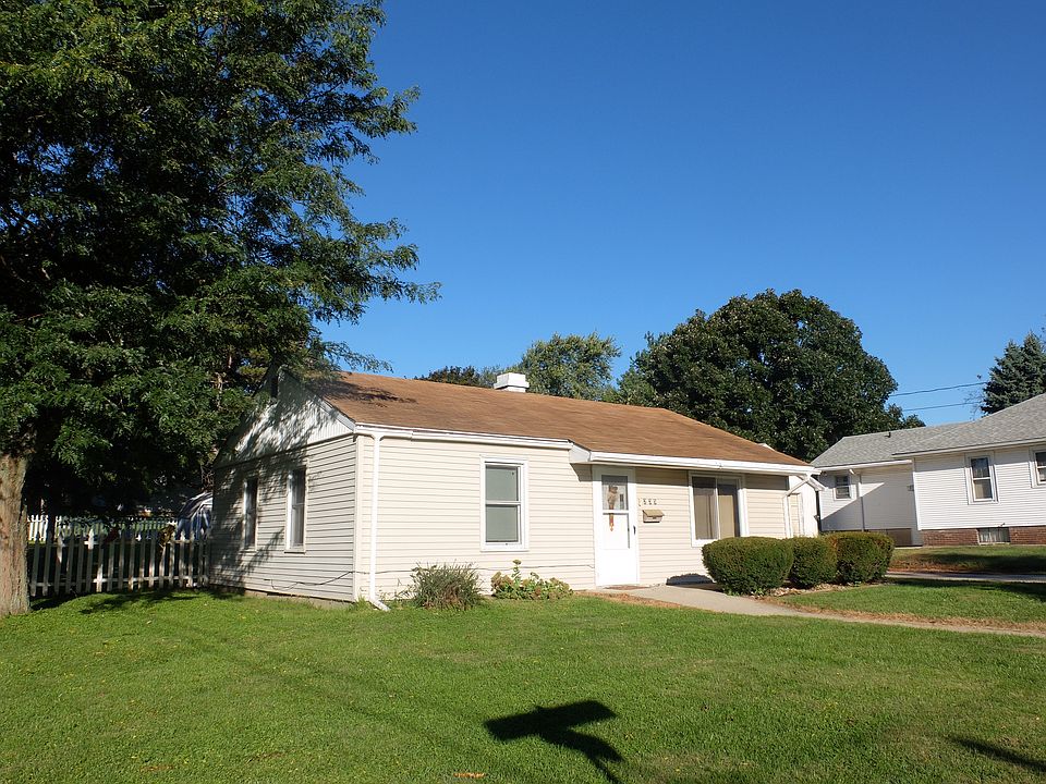 This home offers all-on-one-floor living with a living room, eat-in kitchen, (2) bedrooms, full bath with tub/shower combination, and laundry room. There is a covered patio overlooking the fenced-in backyard with shed and providing protect from the weather all the way from the garage to the house. Situated on a corner lot, it also has a 2-car garage with electric garage door opener. Recent improvements include: freshly painted interior 2016; Rheem gas-forced-air furnace and central air conditioner 2015; water heater 2014; and Tempco vinyl double-paned replacement windows. Appliances being sold as is. Built 1953. Legal description: Lot 4 Blk 5 Otleys Eastview Add City of Kewanee (EZ).