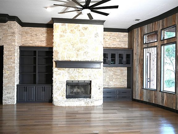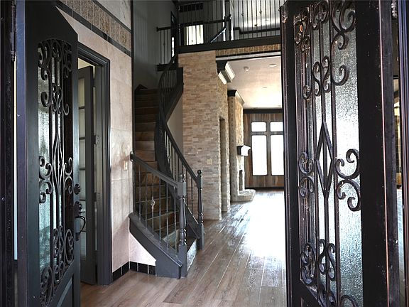 This handsome two-story house is nestled in a lovely gated community. The property sits on a generous 1.5-acre lot, providing privacy and ample space between neighboring homes. Enjoy direct access to a deep-water port for your boat, complimented by a 10-foot-wide concrete road leading to the lake. The house boasts a two-level, well built spacious back porch with a fireplace. The panoramic view of the lake is enhanced by 43 argon-gas filled windows facing the water, ensuring stunning vistas throughout the home. A thoughtfully designed floor plan offers a huge master bedroom conveniently located downstairs., while three additional large bedrooms, game room and media room are upstairs. This property is priced to sell and offers the best value compared to other lakefront homes currently on the market.