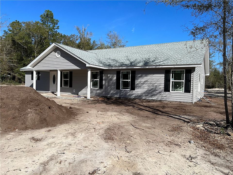 Under Construction, Completion date about 1st week of April, Open and spacious, split floor plan, architectural shingles, spray foam in attic, double pane windows, vinyl siding, luxury vinyl tile flooring, maple cabinets, kitchen has island with eating bar, covered front porch, back patio, one acre of high and dry land. This property is on a new well and septic, No HOA, County maintained Road, and high speed internet(fiber) available. Also Includes one year Builders Warranty.