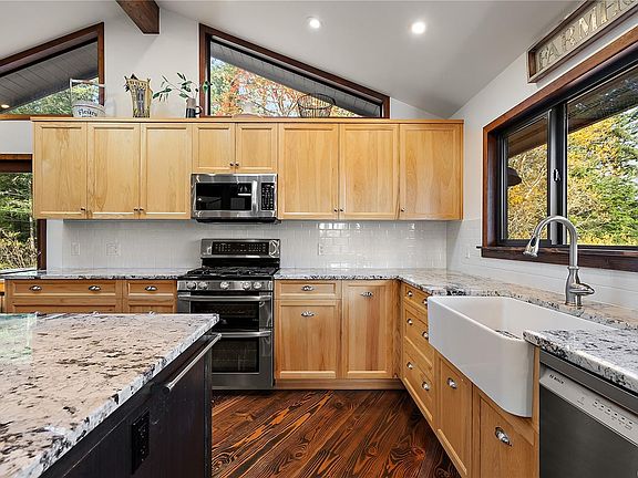 Beautifully renovated homeOpen-concept livingVaulted ceilingsBrick fireplacePig penChicken coopScenic forest trails