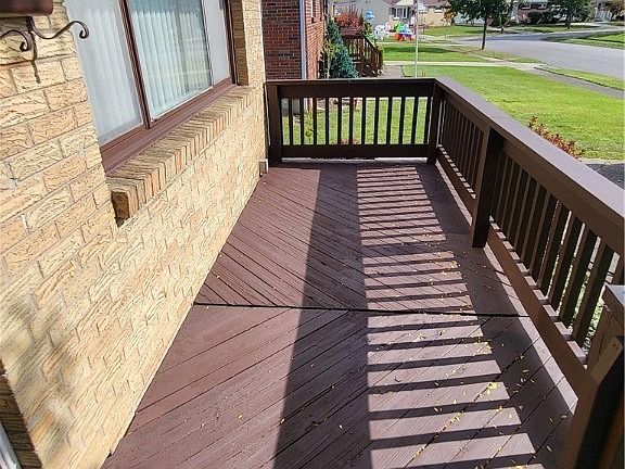 Brick ranchLarge front porch deckTreed and private yardGenerous sized bedroomsCovered patioBeautiful yardEating area