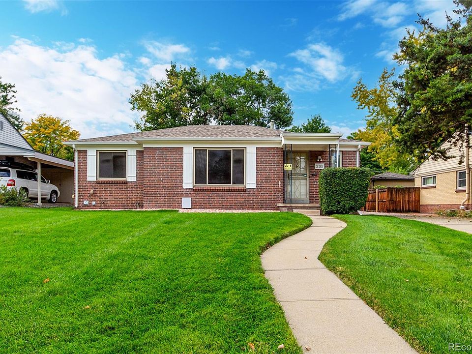 Nestled in the heart of Denver’s coveted Eastern Capitol Hill/Hilltop-Crestmoor corridor, this 2-bedroom + den, 3-bath brick ranch is a rare opportunity to add your personal touches and make it your own! With 1,242 square feet on the main level plus a finished basement, the home offers a solid foundation and incredible potential for thoughtful updates. The main floor features a light-filled living room with a bay window, adjoining dining area, and an eat-in kitchen with granite counters, built-in appliances, and ample cabinetry. Two bedrooms, including a spacious primary suite with private bath, complete the main level. Downstairs, the finished basement provides a large family room, a den/non-conforming bedroom, a half bath, and a laundry area—perfect for guests, hobbies, or office space. Outside, enjoy a 7,500 sq ft lot with mature landscaping, a grassy yard, and a covered patio ideal for entertaining. A detached 2-car garage with driveway parking offers convenience and storage. This property is being sold as-is and presents the ideal blank slate for a buyer looking to design their dream home in one of Denver’s most sought-after neighborhoods. The area is renowned for its quiet, tree-lined streets, top schools (Carson, Hill, and George Washington), and unbeatable location just blocks from 6th Avenue Parkway, minutes to Cherry Creek, Lowry, parks, dining, and shopping. Whether you’re a renovator, or end-user with a vision, this is your chance to bring new life to a home with excellent bones in a premier Denver location. Book your showing today!