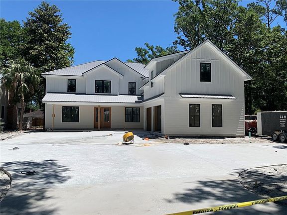 Custom designed in the heart of Saint Simons. Exterior features include gated, salt water pool, sauna, outdoor fireplace, and entertaining area, gorgeous landscaping, and more. Interior details includes hardwood throughout and marble bathrooms. Quartz counter-tops, beamed ceilings, chefs kitchen, formal dining, office, detailed lighting package and much more! This lot is in a prime location on the south end of St. Simons Island within walking distance to the beaches, shops and dining. Island living awaits. Bonus room that is prefect for little ones with built-in bunk beds! This would make for a great investment as a vacation rental as it will sleep 15 people easily. Seller is a licensed agent (245963) in the state of Georgia. Completion date is set for mid June 2020!