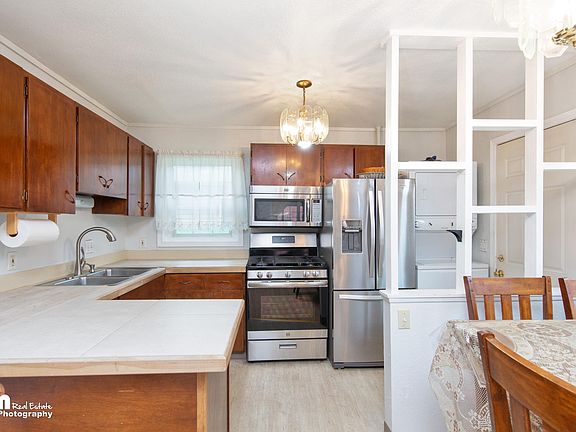 Ranch style duplex near JBER. This four bed, two bath home has a large covered porch and deck. Includes a 760 sq ft detached garage, great to be used as a shop or storage. Metal roofing installed in 2015, and a brand new driveway installed in June 2020. Located within 2 miles from groceries, gyms, trails, 20+ restaurants, and 14+ parks. Less than a 10 minute drive to JBER and Tikahtnu Commons.