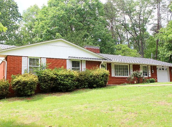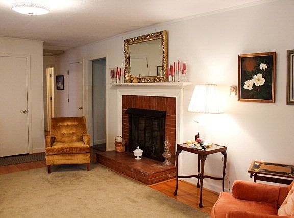 Great location, convenient to I-40. This 3 BR/2 BA Brick Ranch has beautiful hardwood flooring, living room with gas log fireplace, dining room, kitchen, den with wood burning fireplace insert, sun porch, and one car garage on the main level. Also, a large drive in full basement with lots of storage space, a roughed in bathroom, and laundry area. Nice backyard with large fenced dog lot, outbuilding, mature trees and landscape. The grounds consist of two lots, one across the street to total 3.6 +/- acres.