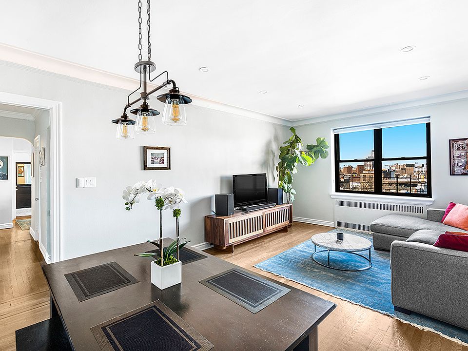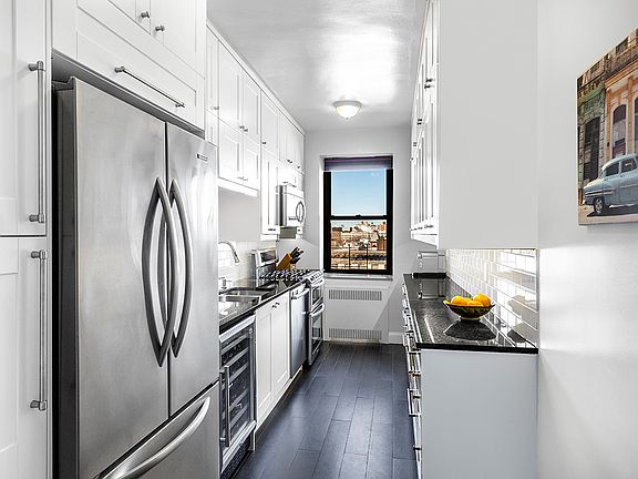 This top floor 2-bedroom, 1-bathroom home is a seamless combination of pre-war architecture and modern finishes in one of Park Slope's most sought-after full-service co-ops. Upon entering the apartment, the home's charm and warmth are immediately felt. The gracious foyer is lined with floor-to-ceiling shelves and cabinetry perfect for displaying books, pictures, art and more. Off the foyer is the spacious living and dining area framed with a large window bringing in natural light and stunning views of Downtown Brooklyn and Manhattan. Enjoy a beautifully renovated windowed kitchen with the same stunning views and light. The kitchen is outfitted with custom white cabinetry, dark granite countertops, stainless steel appliances and a wine fridge. Down the hall are the home's bedrooms and the master easily fits a king-size bed and additional furniture. Each room also includes large closets and share the classic pre-war style bathroom. All rooms, including the bathroom, share the same stunning views and light. Additional features of this special home are newly stained hardwood floors, charming base and crown moldings, 9 ft ceilings, recessed lighting, and abundant closets and storage throughout. Centrally located in prime North Park Slope, 235 Lincoln Place is one of the most sought-after prewar co-ops in the neighborhood. Amenities in this pet-friendly elevator building includes a doorman, live-in super, bike room, package room, communal laundry room and additional storage. The location is blocks from Prospect Park, Grand Army Plaza, the Brooklyn Public Library, Brooklyn Botanical Garden, Greenmarket, cafes, restaurants, shops, markets, local services. and 1 block to Prospect Park. With nearby access to express trains at 7th Avenue Station and Grand Army Plaza station, transportation is a breeze, with B/Q and 2/3/4 just minutes away.