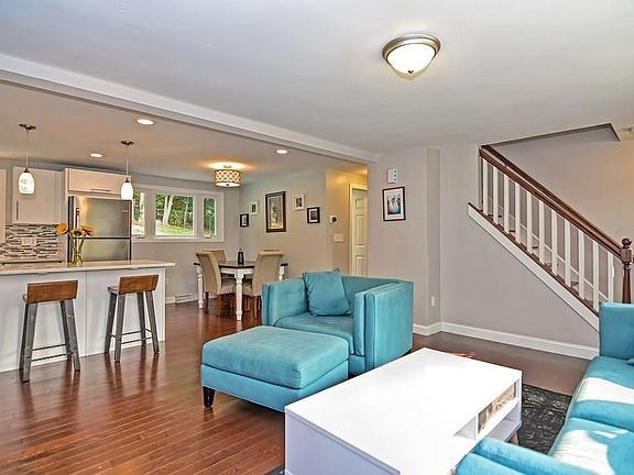 This beautiful cape was renovated & redesigned in 2016 w/ an attractive open floor plan & access to an oversized deck that was just rebuilt 2020 & overlooks the fenced yard & refinished gunite pool in 2018. The kitchen offers sparkling quartz counters w/ breakfast bar island, recessed lighting, tile backsplash, SS appliances, plus dining area. The living room has a beautiful bay window & wood fireplace. The large first floor master has a walk-in closet & full bath w/ tiled shower stall. 2nd floor has 2 large bedrooms, each with skylights; main bath w/ double sink & granite counter vanity. The basement has a room that can be used as a bedroom, gym or home office. There is also a 1 car garage! Roof, siding, central air, wiring & windows updated in 2016. In addition to the deck and pool upgrades, the current owner added hardwood to the 2nd floor bedrooms. Now there are hardwood floors throughout the two main living levels of this home & the 2.5 bathrooms have ceramic tile flooring.