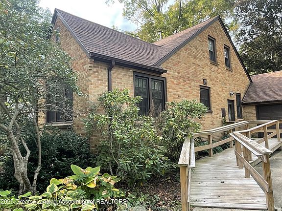 This charming brick home embodies modern comforts and classic details. The inviting 3-bedroom, 2 ½ bath residence blends timeless character with thoughtful updates throughout. The kitchen has been modernized with stainless steel appliances including a high-end gas stove with double oven and warming drawer, brand new counter depth refrigerator, soft close drawers, and solid surface countertops. You'll notice the details like plaster crown molding, arched doorways, gas fireplaces, first floor laundry, and gleaming hardwood floors which highlight the home's craftsmanship. The den features custom built-in bookcases and is adjacent to a bright four-season room with a gas fireplace which opens to a newly built Trex deck. A formal dining room provides a perfect setting for gatherings, while the basement rec room with decorative fireplace adds flexible living space. The pristine full bathrooms showcase vintage tile. Recent improvements include a new roof and gutters, updated mechanical systems, and meticulous landscaping surrounding the spacious yard. The attached two-car garage offers plenty of attic storage. Imagine coming home down a treelined street in what is regarded as one of the most beautiful and unique residential areas in East Lansing.