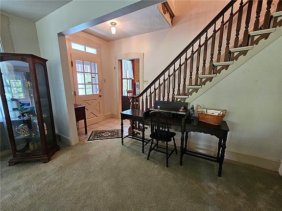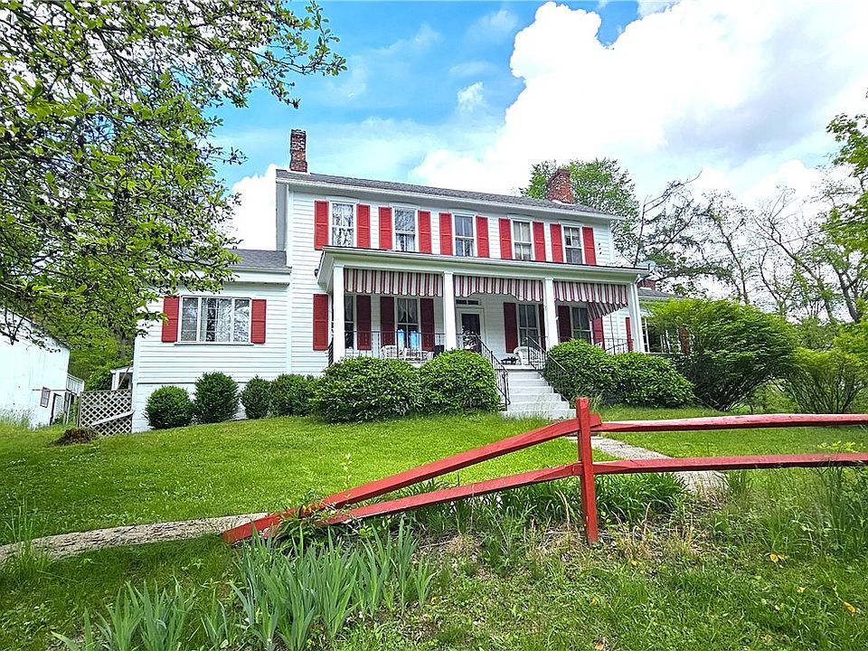 A serene lifestyle is offered in this 1875 farmhouse nestled on 10 picturesque acres surrounded by fields & mature trees. The charming covered front porch & back patio offer great outdoor spaces to relax & enjoy the wildlife & gorgeous scenery. The entry opens to a huge sunlit living room w/ log burning fireplace. The dining room features a brick, decorative fireplace, great for entertaining. The kitchen includes an eat-in area, small desk space & is open to the cozy family room w/ wood accented walls & ceiling. A 1st floor bedroom & full bath w/ shower provide convenient one-level living. 2 charming bedrooms w/ decorative fireplaces & the 2nd full bath w/ tub are located on the 2nd floor. A partial basement provides a workshop, utility & laundry area. Outside, you will fall in love w/ the 10 gorgeous acres. The charming, 2 story spring house features upper storage & old fireplace. The possibilities are endless in the large barn. Enjoy the natural beauty of this amazing property!