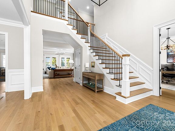 Poised on the shores of Lake Norman in The Point, this extraordinary waterfront residence blends timeless architecture with modern sophistication. A beautifully landscaped lot frames sweeping long-range views, while the backyard reveals a private retreat with a saltwater pool & spa, fenced lawn, sandy beach with fire pit, fresh-water outdoor shower, outdoor dog wash & outdoor grilling area. The expansive dock, recently rebuilt, features a 17,000 lb lift, 50 amps of power & lake-fed irrigation. Inside, a grand two-story foyer opens to a living room with coffered ceiling, fireplace & walls of glass capturing the lake. The gourmet kitchen showcases a massive quartzite island, Sub-Zero 66” fridge/freezer, Wolf range, wine & beverage fridges & reverse osmosis filtration. The main-level primary suite offers lake views, tray ceiling, dual walk-ins & a spa-inspired bath. Upstairs, four gracious en-suites, a flex room with fireplace & laundry provide balance. White oak floors, custom millwork, Hunter Douglas shades, Denon sound system, epoxy garage, instant tankless water heater, encapsulated crawlspace, home generator & whole-house water treatment complete this remarkable home.