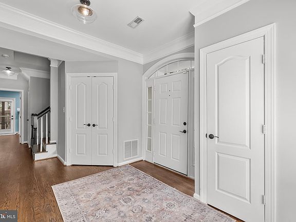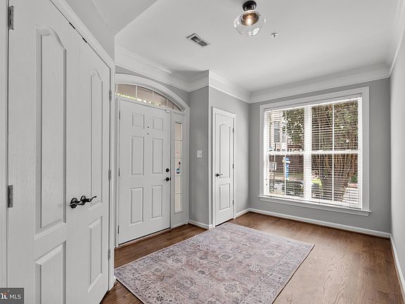 Rare opportunity to own a stunning Van Metre-built end-unit Robert Carter model with four finished levels in a prime location just minutes from Brenman Park and community amenities. This light-filled home offers over $100K in thoughtful upgrades and features 5 spacious bedrooms, 4 full baths, and a powder room. The versatile lower level includes a guest suite with a full bath and French doors. Cozy gas fireplace in lower level. The open main level, enhanced by the removal of columns, boasts an upgraded kitchen with quartz countertops, marble backsplash, recessed lighting, and a brand-new refrigerator (2025), along with gas fireplace that add warmth and charm. The bedroom level includes three generously sized bedrooms, while the top floor offers a private suite enclosed by a pocket door—perfect for guests, a home office, or studio. Elegant hardwood floors run through three levels and staircases. Solid wood plantation shutters throughout main level and stairwells, upgraded window treatments (2021). Recent major upgrades include new HVAC systems and water heater (2019–2020), roof replacement (2020), new windows in two bedrooms, added insulation in the third-level bedroom and attic, and updated ductwork and HVAC returns for enhanced efficiency. The home is freshly painted with added wainscoting, updated banisters, railings, and light fixtures throughout, and has earned a Pearl Certification for energy efficiency. Enjoy outdoor living with a fully fenced backyard and a deck just off the kitchen. This home combines timeless elegance, modern convenience, and a fantastic location—an absolute TEN!