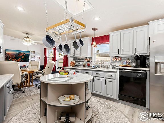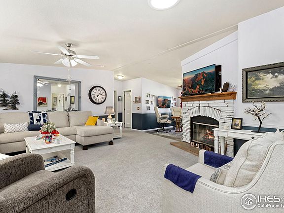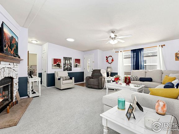 Experience the charm of this beautiful home in Berthoud, featuring three bedrooms and two bathrooms. Enjoy convenient ramp access to the front door and an expansive outdoor great room, perfect for entertaining, along with a large storage room. Inside, you'll find a spacious living area with a cozy gas fireplace, a separate dining room, a well-equipped kitchen, and a convenient laundry room. Don't miss out on this fantastic opportunity! Low lot rent $730 monthly!