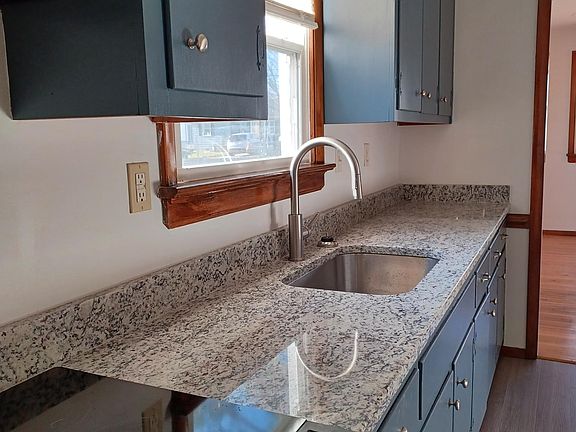 The kitchen is at the rear of the house and has a back door with a storm door which leads to a painted back stoop into the shaded back yard. The kitchen has a new granite countertop with new stainless-steel sink and faucet, painted solid pine wood cabinets, a refrigerator and stove.