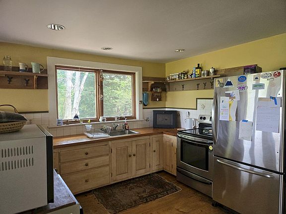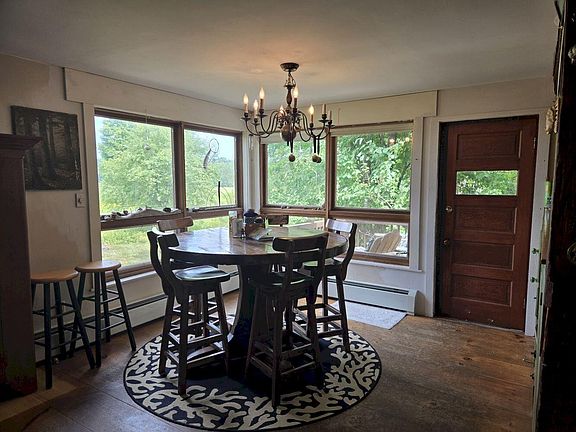 Where modern blends with history in such a way with this contemporary that you'll never realize the original house was crafted in the late 1880's. Marvelous home on 55 acres with lots of frontage on Wilson Stream and acres of organic fields to hay or plant. This spacious home has three living rooms, three bedrooms, could easily be four, 2 full bathrooms, large open kitchen, and dining room area with large windows overlooking the deck and fields in the back. Wide pine board floors throughout. A pleasure to see..........and a swimming hole to boot.....
