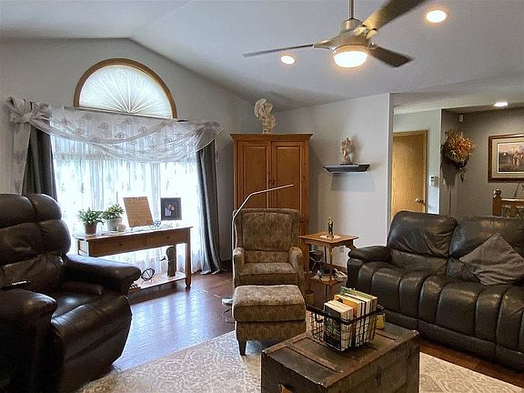 Exactly what you've been looking for--5 acres on black top with quality traditional ranch. Open concept with vaulted ceilings, two fireplaces, and a formal dining room, a view-through opening to kitchen with a granite buffet. Loads of natural light and triple-pane Pella French doors that lead to the patio area. You will also enjoy the butler's pantry with additional storage space and granite countertops plus another sink for food prep. All kitchen appliances remain including trash compactor. Grand open area centrally located in the heart of the home makes up what could be another room in space. Hard wood flooring and heated tile. One, large main floor bedroom with walk-in closet featuring many custom built-ins. You will LOVE this master bathroom, too. Claw-foot tub, solid surface countertop, and a walk-in shower plus heated floors! Main floor laundry room right off the two car, attached garage (washer and dryer negotiable). Also another half bathroom on the main floor. Two more bedrooms in the basement (one with oversized walk-in closet), another full bathroom, additional storage space, plus spacious family/rec room. A true safe room is also located in the basement. 80% of the house has been wired for a back-up generator. Don't miss the 16x24 atrium/sun room addition with resistance pool and swim spa right off the 33x14 private patio area where you will no doubt enjoy many fun gatherings. The home is gorgeous but there's more...1997 30x50 Morton building with concrete floor plus electric, heat, work benches, a pellet stove, bathroom, and more...9x12 storage shed...13x15 garden shed could be finished for additional living space, too. Wow! 2017 heated swim spa (with TV) remains as does the basement gun safe. Welcome to your dream-come-true.