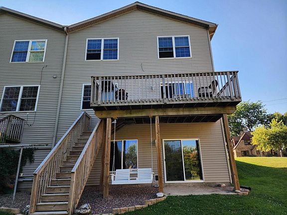 Perfect commuter location & no monthly/yearly fees! Your updated 3-bedroom townhouse has an exposed lower level & massive back yard! Inside you will find your kitchen updated with granite counter tops, stainless steel appliances & breakfast bar which is open to dining area & living room. The kitchen also has a pantry with washer/dryer hook ups! The patio doors off the dining area let in lots of natural light & leads to a deck for relaxing or entertaining. Finishing out the first level is a remodeled 1/2 bath. Upstairs is 3 bedrooms & 2 full baths. Primary bedroom with private bath, double sinks, walk in closet & laundry hook up. Some other great things to know... 200-amp electrical service, power to shed/playhouse & 9 1/2' ceilings in basement. New softener, flooring & paint in 23
