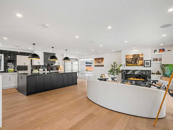 This is the kind of home where memories are made. This fully redesigned corner-lot two storey offers over 3,100 sq ft of bright, cheerful living space, perfect for busy families who love to gather, entertain, and enjoy the outdoors. Step inside and be greeted by a sunny, open-concept layout with multiple levels that make the home feel fun and connected. There’s room for everyone with 5 spacious bedrooms, 3 full bathrooms, and a fully developed basement, complete with a home theatre for movie nights and game-day parties. The kitchen is the heart of this home, featuring a Frigidaire Professional appliance package, loads of cabinet space, and a walk-through butler’s pantry for all the snacks. The main floor also includes a mudroom and laundry area, keeping backpacks, sports gear, and everyday life organized. Thoughtful upgrades are everywhere you look: dual-zone heating and air conditioning to keep everyone comfortable, built-in speakers for dance parties, glass panel railings, under-cabinet lighting, and custom millwork that adds character to every corner. Parents will love the private primary suite, a peaceful retreat with a spa-inspired ensuite featuring a soaker tub, dual vanities, and a body-spray shower. The fully finished double rear-attached garage is designed as an extension of the home, offering versatile space that could serve as a private workout room with convenient access directly into the basement. The lower level also provides the option to create a separate suite, perfect for extended family, guests, or rental potential. (Secondary suite would be subject to approval & permits by the city.) Outside, the backyard is ready for family BBQs, birthday parties, or roasting marshmallows on a cool night. Living here means lake access all year round, swimming in the summer, skating in the winter, plus three excellent schools just a short walk away, great parks, and shopping nearby. It’s rare to find a home this unique in a community this special, be sure to check out the iguide to look at the unique floor plan and living spaces. Come see why families love Lake Bonavista, book your showing today!