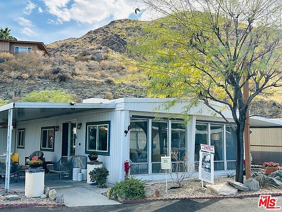 You can move right in to this beautifully renovated 2 bedroom, 2 bath mobile home in fun & funky Safari Park. Nestled up against the hillside in the back of the park, this home offers quiet serenity at a price that can't be beat. Renovations included updated kitchen and baths, many double-pane windows, upgraded electrical (replacing the aluminum wiring), wood-look laminate floors, drywall in some upgraded areas, plenty of built-in cabinets, lot of storage, three utility sheds, sweeping side patio and quiet backyard space. With a low monthly lot rent of just $731.47, this affordable Palm Springs retreat is calling your name. Schedule a tour today! (Safari Park is a 55+ community.)