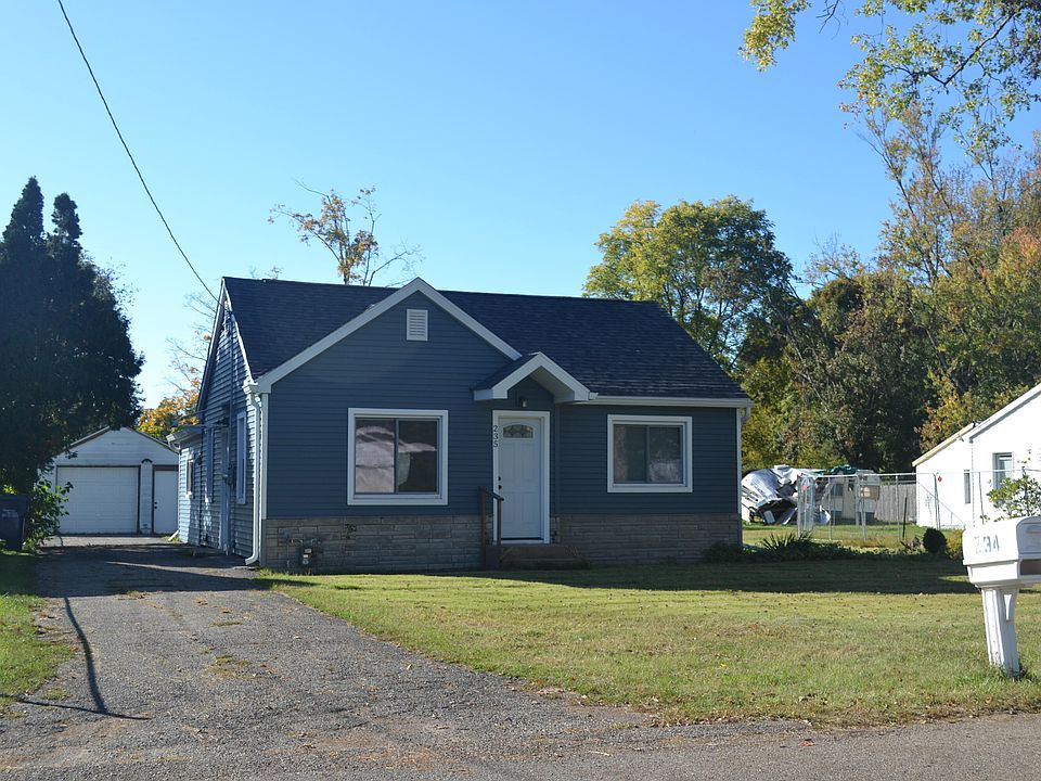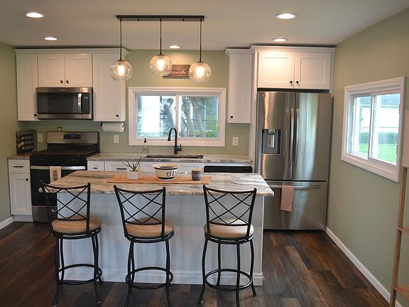 Recently completely remodeled home, with great room with beautiful kitchen island with Granite counters, a built in buffet in the dining room, a large bath tub with tiled backsplash, and 3 bedrooms including one with french doors that could be an office or formal living room if desired. Large lot with almost half an acre. Roof, insulation, siding, kitchen, bath, paint and flooring all done just 2 years ago. Come see this great home