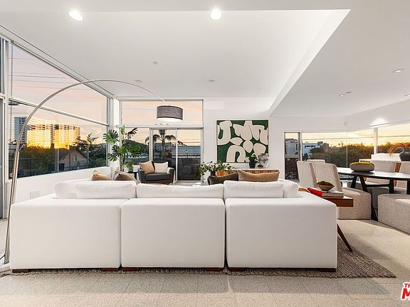 Located in an architecturally significant building in Ocean Park designed by Michael Folonis, this residence sits in one of the Westside's most desirable neighborhoods. Just moments from the ocean, shops, restaurants, and cafes, it offers the perfect balance of relaxed coastal living and urban convenience. Positioned at the front of a rare three-unit building, the home features glass on three sides, filling the interiors with natural light and refreshing ocean breezes. A dramatic three-story atrium and staircase accentuate the sense of openness. Ceiling heights ranging between 8 and 20 feet create an atmosphere that is at once warm and grand, tied together with thoughtful architectural details. The main living area features floor-to-ceiling glass walls with views stretching toward the ocean, complemented by a balcony ideal for enjoying coastal breezes. The open kitchen and dining area are designed for entertaining, finished with Bianco Romana granite stone, custom wood veneer cabinetry, soaring ceilings, and a clerestory window that floods the space with light. A full bathroom on the main level adds convenience for guests. On the lower level, the spacious primary suite offers Claro Walnut wood veneer closets on two sides and direct access to a private patio enclosed in frosted glass for privacy. The ensuite bathroom showcases Italian Statuarieta stone, dual sinks, a frameless glass waterfall shower with dual Dornbracht fixtures, and sleek finishes throughout. Two additional bedrooms, each generously sized, share a full bathroom also finished in Statuarieta stone. One bedroom includes private outdoor space. Above the main living level, a mezzanine provides the perfect home office or lounge, leading to a private rooftop deck with treetop, neighborhood, and ocean views. This is an exceptional space for year-round entertaining. Additional features include in-unit laundry, secure private access, and two side-by-side parking spaces in a gated underground garage. This is a rare opportunity to live in an architecturally significant residence in the heart of Santa Monica, designed for the most discerning buyer.