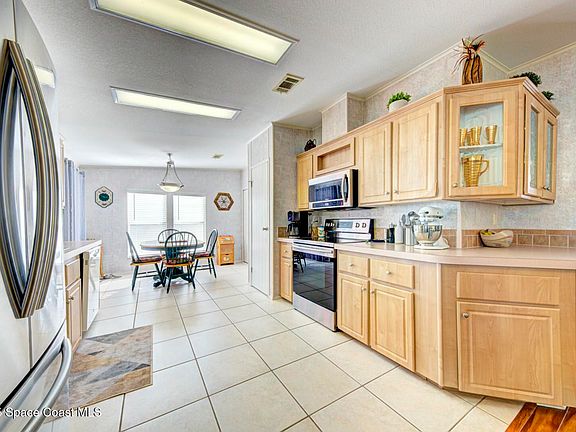 A 2 bedroom unit with beautiful floors, bright and comfortable sunroom with vinyl windows to make it usable all year round, a spacious kitchen and furnished! The tie downs were all updated in 2024. A new air conditioner in 2024 and a new roof in 2018. Lost Lakes is a highly sought after 55+ community in Cocoa with RV and boat parking, pickleball courts, workout room, pool tables, large club house with full kitchen, and a heated pool with hot tub. Watch the rocket launches, take a short drive to the beach or Orlando airport and all of the attractions.