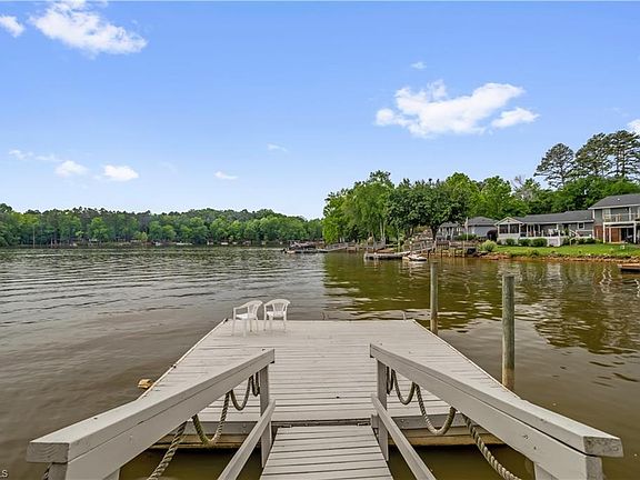 This home is just what you need! A waterfront home with boat ramp and dock with floating pier in such an amazing location on High Rock Lake! Move in ready, just in time for you to enjoy the spring/summer on the water! Spacious great room, super convenient galley kitchen and dining area surrounded on 2 sides by windows (dining with a view!!!). All this living space plus a sunroom with a wet bar! Primary bedroom is large with WIC and ensuite bath w/double sinks and separate tub & shower. Also, primary BR has a deck/balcony overlooking the lake! Two extra bedrooms share a bath down the hall. 2 car garage on main level and watercraft garage in rear with ramp to lake. Lots of storage in the lower garage area. Freshly painted decks & pier. Home sits far off street. Lovely setting and convenient to I-85 and Historic Salisbury. Start making memories with your Lake Life Home today!