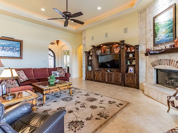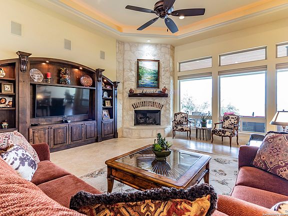 Lake View! Come enjoy the peace and relaxation of the Peninsula at Mystic Shores. This stunning house by Travis Mitchell Custom Homes was completed in 2016. This property has a Spanish Style exterior with an in-ground pool and spa over looking the beautiful blue waters of Canyon Lake. As you enter the home, you will admire the large living room open floor plan with an island kitchen that will not disappoint. Check out the spacious hidden pantry behind the stunning custom cabinets. Kitchen includes induction cooktop. Primary bedroom has sizeable walk-in closet that is sure to impress any clothes enthusiast. Unwind in the roomy primary bathroom that has a large walk in shower. The oversized three car garage even has a climate controlled storage room. Only minutes away from Canyon Lake boat ramp, enjoy the neighborhood amenities which include, private lakeside park, tennis courts, pool, playground and running trails. Don't wait, schedule your private showing today!