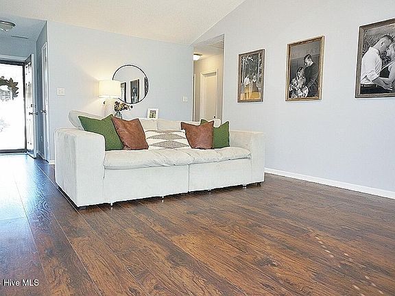Welcome to 235 Raintree Road in the desirable neighborhood of Raintree. Located in Jacksonville NC and minutes from area shopping, restaurants, parks and outside the city limits, this homes location is more than ideal. As you walk up to the home you will notice the covered front porch perfect for that morning cup of coffee or enjoying those great Carolina evenings. Walk through the front door to find beautiful laminate flooring in the living room, dining room, kitchen and hallway. The kitchen has been updated with ivory/cream cabinets with touches of brown for added elegance, ceramic tile backsplash, and granite countertops. With plenty of cabinet and counterspace the kitchen also comes well equipped with stainless steel appliances to include electric stove/oven, microwave hood, dishwasher, and refrigerator. The dining room is just off the kitchen making it perfect for entertaining or gatherings big or small. The living room has a vaulted ceilings, large windows for plenty of natural lighting and a wood burning fireplace with mantel and brick hearth. Make your way down the hall to find 3 bedrooms. The owners suite is large with a private bathroom with tile flooring and a walk in tile shower with glass door. The other 2 bedrooms are both large with ample closet space and include ceiling fans. This home also has a great sized fenced in backyard along with a one car garage. Do not let this home pass you by. Call or text for more information or to set up a room by room tour today.