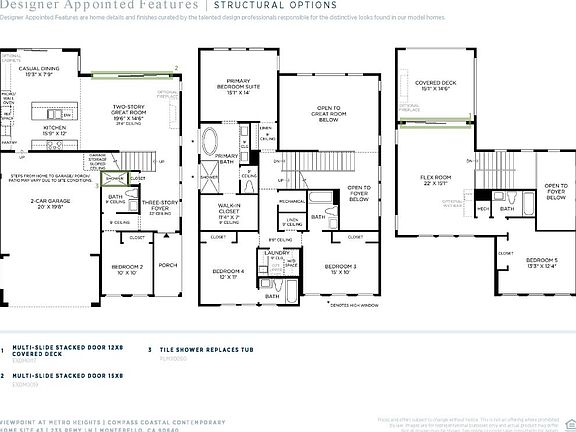 Beautifully designed with ample space for every occasion, the Compass immediately captures your attention with a soaring three-story foyer that flows into the expansive two-story great room. The spacious kitchen and adjacent casual dining area offer a large center island with a breakfast bar, plenty of counter and cabinet space, a roomy pantry, and desirable access to the rear yard. On the second floor, complementing the alluring primary bedroom suite, are a massive walk-in closet and an impressive primary bath with a dual-sink vanity, large soaking tub, luxe shower, and private water closet. The secondary bedrooms one with a private bath and one with a shared hall bath feature ample closets. Secluded on the third floor, a generous flex room with a covered deck is set alongside a bedroom with a closet and a shared hall bath. Additional highlights include a versatile bedroom with a closet and shared hall bath off the foyer, a centrally located laundry, and additional storage throughout. Disclaimer: Photos are images only and should not be relied upon to confirm applicable features.
