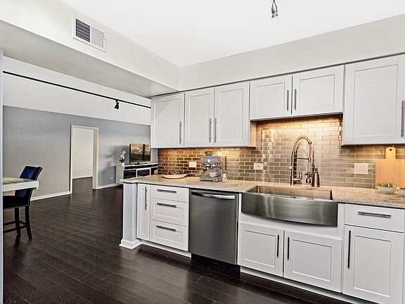 Everything you're looking for is right here in this fully renovated 2 bed, 2 bath condo! It's easy to see that no detail was overlooked in this quiet first floor unit. Hardwood flooring compliments the fresh paint and crisp white trim throughout the open floor plan. A wall of windows draws you in to the living area offering plenty of room for seating and access to the private patio. The adjacent dining area is ready for any occasion and leads into the beautiful gourmet kitchen. All of the updates have been done for you including rows of white cabinetry, stone countertops and stainless steel appliances. Modern lighting and a custom tile backsplash add the finishing touch. The master suite was designed for relaxation with a sitting area by the window and plenty of room for a large bed. The guest room and designer hall bathroom are separate from the master for added privacy. The private patio makes outdoor dining and entertaining easy! Two convenient parking spaces are included!