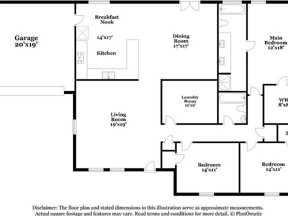 This charming three-bedroom, two-bathroom, smart home is in Covington, GA. There's a spacious backyard, an attached garage, and a covered front porch. The expansive main bedroom features a large walk-in closet and lots of natural light. In the en suite bathroom, you'll notice a walk-in shower, a garden tub, and a double sink. Bedrooms two and three are great sizes, with roomy closets and easy access to the common areas. Those common areas include a modern eat-in kitchen, complete with stainless steel appliances. It also boasts ample cabinet space and long white countertops. From it, you can see into the dining room. It's open and bright, with doors leading to the backyard.