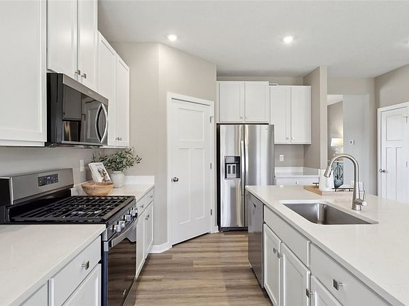 The Hadley by DR Horton is a stunning 4-bedroom, 3-bath home featuring a gourmet kitchen, an upstairs loft, and a 2-car garage. With its spacious floor plan and versatile flex area, the Hadley is both inviting and functional. As you step into the foyer, you’re welcomed by a flex room that can be tailored to your needs—whether as a formal dining area or a children’s playroom. The kitchen boasts a large, modern island that seamlessly connects to the casual dining area and living room, allowing conversations to flow effortlessly. Off the living room, you’ll find a guest bedroom and a full bath, ideal for a guest suite or a home office. Upstairs, the home offers an expansive loft, a convenient laundry room, and four additional bedrooms, including the primary suite. The primary suite features a spacious walk-in closet and a luxurious bathroom, creating a private retreat within your home.