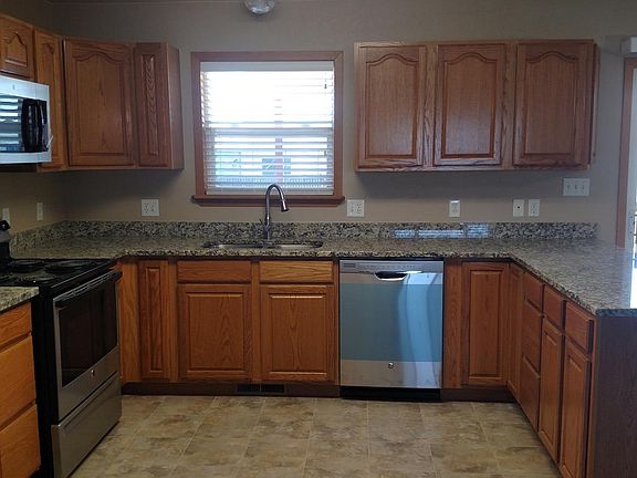 Lovely remodel with new granite counters, faucets, flooring, interior paint, window shades*Main floor laundry, and no steps in this ranch style home* Master has it's own bathroom with walk-in shower*Step into your lovely backyard with covered patio, garden area, and utility shed*Vinyl siding for easy maintenance*Full basement*2 car attached garage*RV/trailer/toy parking*NO HOA's* All in a full-service small town with friendly folks, and great food!
