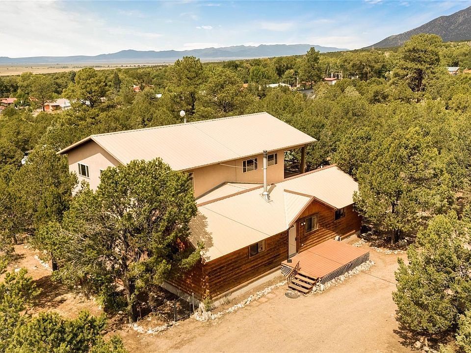 Extensive and stunning views from this 5 bed, 3 Bath home in the town of Crestone! With over 3600 sq ft between three floors, there are an exceptional number of uses for the home. The unique design blends a quaint frame cabin with a spacious and energy efficient Insulated Concrete Form (ICF) addition. The main floor features two smaller flex bedrooms with lofts along the front of the home, a galley kitchen with brand new refrigerator, range/oven and hood, and opens up to the newer construction to the rear of the home. A large (30 x 15) light filled living room, heated with an energy efficient ETS unit and large wood stove, opens to two additional bedrooms and a large full bath (with additional washer hookup), as well as porches on both sides of the home. The Floating stairs are light filled and wide, perfect for a multitude of plants, and lands on a huge top floor suite. The versatility of this space is remarkable...with two large spaces on either side of the stairs and its own living room space, an incredible (11.5 x 13.5) walk in closet, a beautiful soaking tub bathroom with a view, and a serene balcony overlooking the mountains. Described by the owner as "his favorite place for coffee in the morning", the positioning of the home provides invisibility on this balcony from other neighbors, while allowing breathtaking views of the Sangre De Cristo's. Down the stairs to the first floor basement, this space features its own access from the back gardens, and could be finished to include an apartment kitchen and bathroom. Few utility bills as the home is on a private, 400' deep well and septic system. Easy walking distance to the Crestone Charter school, groceries, the hardware store, shops and restaurants. Check out the matterport 3D tour for an immersive experience of the home, or schedule an in-person viewing!