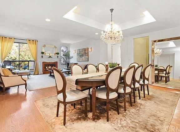 Don't miss this rare opportunity to purchase a Front Facing, Penthouse unit in Beverly Hills. One of the best features of this unit is the open floor plan with the Kitchen looking into the Dining Room and Living Room. This large Great-room separates the Master suite from the 2nd Bedroom and enclosed office offering privacy to the each room. This bright and airy unit features 2 spacious bedrooms + an office, 2 bathrooms, in-unit laundry, and hardwood floors throughout. Five skylights and floor-to-ceiling windows throughout fill the unit with light and draw your eyes out to the views of the trees, neighborhood and city. The Master Bedroom offers large walk-in closets and access to the private balcony. The large en-suite master bathroom has a long vanity with double sinks, a large soaking tub, shower and private wash closet. The Hamptons offers many amenities including security with a call box room 24-hour surveillance, pool, spa, sauna, BBQ grills, and exercise room. Earthquake insurance, water and all amenities are paid by the HOA. In addition, there are two side by side parking spaces, many guest parking spots and two designated storage areas. Conveniently located near La Cienega Park, Cedars Sinai Medical Center, restaurants, shopping, the new metro station to downtown and much more.